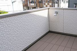 バルコニーとは、室外の専用スペースに出て上を見たときに屋根がなく、解放された空間をいいます。太陽光ををたくさん取り込むことができ、明るく暖かい空間になります。屋根部分を利用した「ルーフバルコニー」も最近人気です。